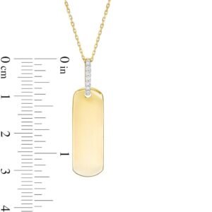 Crafted in warm 10K gold, this petite tag features the word "Believe" inscribed vertically along the center. Diamonds line the bail for a hint of sparkle. Captivating with 1/20 ct. t.w. of diamonds and a bright polished shine, this pendant suspends along a 16.0-inch cable chain with 2.0-inch extender that secures with a spring-ring clasp.This exclusive fine jewelry collection inspires you to wear your strength, confidence and power.