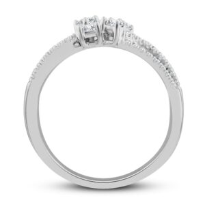 This enchanting diamond ring collection features five distinctively-shaped diamonds, symbolic of everything she means to you. Each diamond shape has a different meaning, from integrity and wisdom, to confidence, totality, and elegance. The beautiful 10K white gold ring features an oval-cut, emerald-cut, pear-shaped, round-cut, and princess-cut diamond at the center, while ribbons of brilliant round-cut diamonds flow outward. The gorgeous ring has a total diamond weight of 1/2 carat.